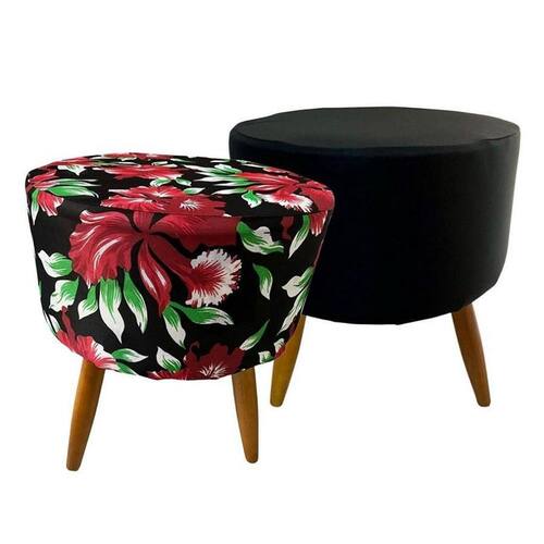 Kit 2 Capas para Puff Redondo Pé Palito Malha com Elástico Cor: 21 preto Mude a decoração da sua casa sempre que quiser, de mandeira fácil e rápida, com as capas para puff. São várias opções de cores e estampas pra você combinar como preferir.