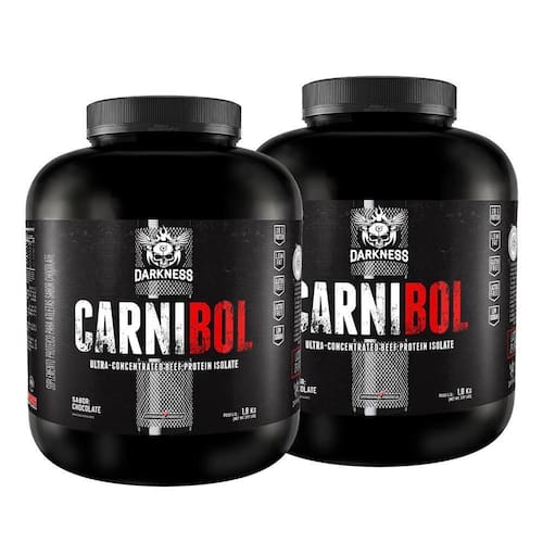 Kit 2 Carnibol Isolado Proteína Carne 1,8Kg Choco DarknessCarnibol A carne bovina, além do alto valor biológico, concentra naturalmente elevados índices de creatina, assim, as proteínas dessa origem são bastante favoráveis à hipertrofia. CARNIBOL tem como base um blend de proteína isolada de carne bovina e peptídeos de colágeno ProMyoBlend , um excelente suporte nutricional aos que realizam treinamento para ganho de massa muscular. Seu consumo é especialmente favorável após os treinos ou longos períodos de jejum, já que sua fórmula Rapid Absortion proporciona alta velocidade de absorção, revertendo o quadro de degradação muscular para um quadro de anabolismo imediato. Com baixo teor de sódio, livre de gorduras e lactose, o percentual nutricional de CARNIBOL favorece o balanço nitrogenado positivo ingestão de aminoácidos maior que sua degradação natural no organismo , uma ótima alternativa para os que não desejam consumir proteínas de origem láctea. Seu consumo é especialmente favorável após os treinos ou longos períodos de jejum, já que sua fórmula Rapid Absortion proporciona alta velocidade de absorção, revertendo o quadro de degradação muscular para um quadro de anabolismo imediato. Com baixo teor de sódio, livre de gorduras e lactose, o percentual nutricional de CARNIBOL favorece o balanço nitrogenado positivo ingestão de aminoácidos maior que sua degradação natural no organismo , uma ótima alternativa para os que não desejam consumir proteínas de origem láctea. Contém Glúten: Não; Contém Lactose: Não; Indicação: Ganho de massa muscular e ganho de força; Sugestão de UsoDiluir 35g 1 scoop de Carnibol em 250 ml de água. Consumir 1 dose após o treino ou conforme orientação profissional.; DiferenciaisProteína da Carne, Alto Valor Biológico, 0g Fat, Low Sodium. Este kit contém 2x Carnibol
