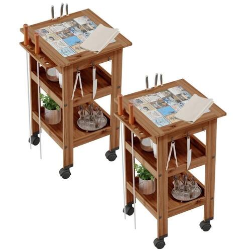 Descrição do produto: Fazer aquele churrasco de primeira é sem dúvida um dos melhores momentos para reunir família ou os amigos! Desta forma, ter um carrinho auxiliar de churrasco é super importante para servir refeições, acompanhamento ou bebidas com higiene e praticidade sem preocupações. Possui amplo espaço para armazenamento de acessórios ou condimentos em suas prateleiras, suporte de espeto e suporte de talheres grandes. Sem abrir mão da beleza, o carrinho gourmet possui cerâmica com tema vintage que contribui com a decoração da área de churrasco ou cozinha. Equipado com rodízios que o torna ainda mais prático, com ele a sua área gourmet está preparada para aquele final de semana!