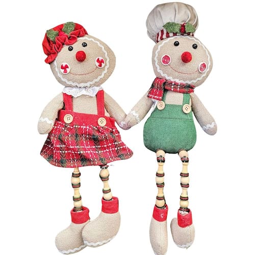 Traga a doçura e o charme dos biscoitos natalinos para sua decoração com nosso adorável kit de casal boneco Gingerbread Cookie. Com perninhas penduradas em madeira, são perfeitos para adicionar um toque aconchegante e divertido ao Natal.
