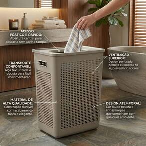 A abertura superior torna o uso mais prático, podendo depositar peças de roupas sem levantar a tampa, mantendo o ambiente sempre em ordem.