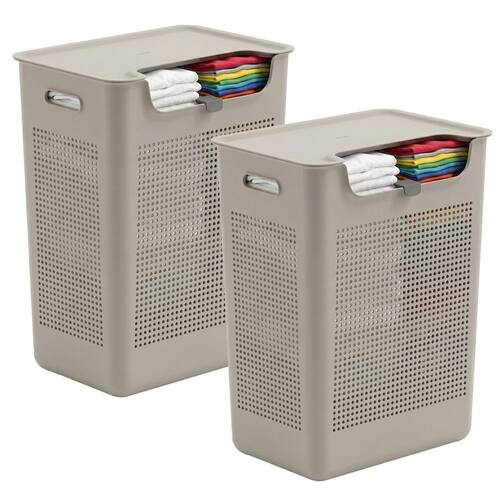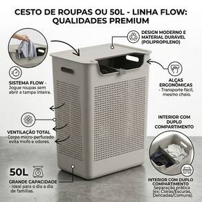 Cesto de Roupa Com Tampa Plástico 50 Litros Duplo Compartimento Flow