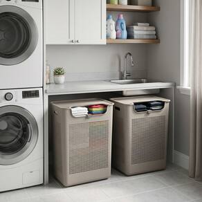 O cesto de roupas Flow foi criado para tornar a rotina de lavagem mais simples e organizada. Com dois espaços internos ajustáveis, você escolhe como dividir o volume, garantindo uma separação prática entre roupas claras, escuras, delicadas ou toalhas.