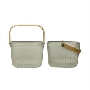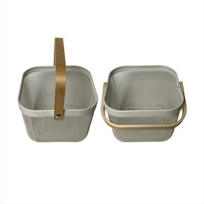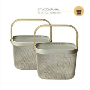 Cesta Organizador em Tela Metálica com Alça de Madeira - 24,5 x 24,5 x 18 cmOrganize com charme, ventile com praticidade e decore com estiloA Cesta Organizadora em Tela Metálica com Alça de Madeira é o item perfeito para quem busca unir funcionalidade com design contemporâneo. Fabricada com estrutura metálica resistente e acabamento em pintura fosca, esta cesta proporciona um visual sofisticado e ao mesmo tempo discreto - ideal para compor diferentes ambientes da casa com harmonia e personalidade.Características Técnicas:Material do corpo: Tela metálica em aço com pintura eletrostática acabamento fosco, durável e resistente à corrosão .Material das alças: Madeira natural envernizada acabamento suave ao toque, com efeito visual quente e acolhedor .Dimensões:24,5 cm largura 24,5 cm profundidade 18 cm altura Vantagens e Aplicações:Organização multifuncional: ideal para armazenar toalhas de mão, rolos de papel, cosméticos, sabonetes, acessórios de cabelo, temperos, pacotes de alimentos, potes de mantimentos, talheres, panos de prato, entre outros.Estilo versátil: combina perfeitamente com banheiros modernos, cozinhas abertas, lavanderias planejadas, home offices, espaços gourmet ou prateleiras decorativas.Boa ventilação: a estrutura vazada de tela permite a circulação de ar, ideal para produtos que precisam respirar, como esponjas, alimentos secos ou tecidos.Fácil de transportar: as alças de madeira anatômicas facilitam o manuseio mesmo quando a cesta está cheia.Visual decorativo: o contraste entre o metal preto e a madeira clara oferece um toque natural e elegante à decoração.Images IlustrativasDica de uso:Monte um conjunto com outras cestas similares e crie um sistema de organização modular. Combine com etiquetas ou tags para uma organização ainda mais eficiente e charmosaEssencial para quem valoriza ambientes organizados, funcionais e visualmente agradáveis.Com esta cesta, até as pequenas tarefas do dia a dia ganham um toque de bom gosto e praticidade.