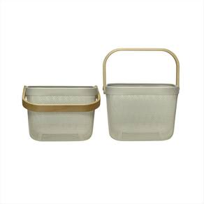 Cesta Organizador em Tela Metálica com Alça de Madeira - 24,5 x 24,5 x 18 cmOrganize com charme, ventile com praticidade e decore com estiloA Cesta Organizadora em Tela Metálica com Alça de Madeira é o item perfeito para quem busca unir funcionalidade com design contemporâneo. Fabricada com estrutura metálica resistente e acabamento em pintura fosca, esta cesta proporciona um visual sofisticado e ao mesmo tempo discreto - ideal para compor diferentes ambientes da casa com harmonia e personalidade.Características Técnicas:Material do corpo: Tela metálica em aço com pintura eletrostática acabamento fosco, durável e resistente à corrosão .Material das alças: Madeira natural envernizada acabamento suave ao toque, com efeito visual quente e acolhedor .Dimensões:24,5 cm largura 24,5 cm profundidade 18 cm altura Vantagens e Aplicações:Organização multifuncional: ideal para armazenar toalhas de mão, rolos de papel, cosméticos, sabonetes, acessórios de cabelo, temperos, pacotes de alimentos, potes de mantimentos, talheres, panos de prato, entre outros.Estilo versátil: combina perfeitamente com banheiros modernos, cozinhas abertas, lavanderias planejadas, home offices, espaços gourmet ou prateleiras decorativas.Boa ventilação: a estrutura vazada de tela permite a circulação de ar, ideal para produtos que precisam respirar, como esponjas, alimentos secos ou tecidos.Fácil de transportar: as alças de madeira anatômicas facilitam o manuseio mesmo quando a cesta está cheia.Visual decorativo: o contraste entre o metal preto e a madeira clara oferece um toque natural e elegante à decoração.Images IlustrativasDica de uso:Monte um conjunto com outras cestas similares e crie um sistema de organização modular. Combine com etiquetas ou tags para uma organização ainda mais eficiente e charmosaEssencial para quem valoriza ambientes organizados, funcionais e visualmente agradáveis.Com esta cesta, até as pequenas tarefas do dia a dia ganham um toque de bom gosto e praticidade.