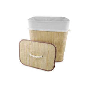 Kit 2 Cesto de Roupas Com Tampa e Saco de Pano Removível Lavável de Bambu Claro Ecológico Mimo Style Característica O Cesto de roupas em bambu da marca Mimo Style é uma peça de decoração elegante para sua casa. Com sua estrutura em bambu, um material resistente e sustentável, este cesto é uma opção consciente e ecologicamente correta para o seu lar, além de ser espaçoso o suficiente para acomodar diversas peças de roupa, mantendo o ambiente organizado e livre de bagunça. Especificações Técnicas - Marca: Mimo Style - Modelo: Cesto de Roupas - Material: Bambu, Algodão, MDF e Ferro - Capacidade: 60L - Saco Forro Removivél - Alças em Corda - Produto de Matéria Prima Sustentável Peso e Medidas Aproximadas - Altura: 50cm - Largura: 30cm - Comprimento: 40cm - Peso: 1,700g Itens Inclusos - 02 Cesto de Roupas