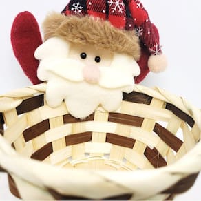 Celebre o Natal com Encanto! Cesto Natalino de Palha Decorado com Boneco Papai Noel Pelúcia - 12cm