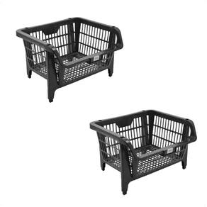 Kit 2 cestos plásticos expositores preto 44,5x20,5x35cm Kit 2 cestos plásticos expositores preto 44,5x20,5x35cm
