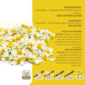Kit 2 chá camomila clinic mais 10 sachês 10g Sobre o produto: o chá de camomila chámais possui propriedades e antiespasmódica. Possui benefícios calmantes e digestivos, auxiliando a aliviar o , insônia e problemas estomacais. Modo de preparo: coloque 1 sachê de chá para cada xícara, despeje água bem quente não fervente e deixe em infusão até o sabor e o aroma ficarem a seu gosto. Ingredientes: camomila. Após aberto, consumir em até 60 dias. Conserve ao abrigo de luz, calor e umidade. Alergênico: -não contém glúten. Marca: Não Informado Ean: 7908609530580