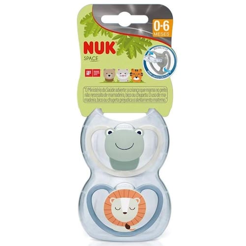 Kit 2 Chupeta Nuk Space Silicone Glow Brilha no Escuro Tamanho 1 Menino Menina 0 A 6 Meses Leão e Sapinho Recém Nascido Somos a loja Juba Baby Store, referência de mercado no segmento de produtos para bebês. Nossos anúncios são feitos com muito carinho e pensados para esclarecer todos os detalhes dos nossos produtos. Se você ainda ficar com alguma dúvida, pode entrar em contato com a gente através do campo de perguntas, iremos responder o mais rápido possível. Nossos pacotinhos são muito embalados em uma caixinha super segura para que você receba o produto em perfeito estado. Kit com 2 chupetas nuk space silicone tamanho 1. Recomendado para bebês de 0 a 6 meses. Está com dificuldades para encontrar a chupeta certa para o seu bebê As novas chupetas NUK Space têm um escudo revolucionário que possui aberturas muito grandes, permitindo o fluxo de ar máximo e permitindo que a pele suave do bebê respire. Como todas as chupetas NUK, o NUK Space é aceito por 95% dos bebês e apresenta o formato mamilar aprimorado. O mamilo assimétrico da NUK se ajusta naturalmente ao paladar do bebê e agora é aprimorado para permitir mais espaço para um movimento de sucção natural, reduzir a pressão nos dentes e na mandíbula e ajudar a evitar o desalinhamento dos dentes. Inventada há mais de 60 anos por dentistas e médicos pediátricos, a chupeta NUK é modelada segundo o formato natural do mamilo da mãe durante a amamentação. Isso facilita a transição do seio para a chupeta e vice-versa. O escudo em forma de coração NUK no NUK Space se encaixa perfeitamente sob o nariz do bebê para facilitar a respiração e evita irritações. Agora, todas as chupetas NUK estão disponíveis em um estojo de armazenamento reutilizável que facilita a limpeza no microondas. CONTEÚDO DA EMBALAGEM: 01 Chupeta Nuk Space com desenho de Leãozinho 01 Chupeta Nuk Space com desenho de Sapinho 01 Estojo esterilizador Este produto é certificado pelo INMETRO: CE-PUR/IQB-000612 - NBR 10334 - OCP 0006 O Ministério da Saúde adverte: A criança que mama no peito não necessita de mamadeira, bico ou chupeta. O uso de mamadeira, bico ou chupeta prejudica o aleitamento materno.