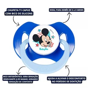 Características: Bico Orto, formato semelhante de uma mamilo natural, trazendo a sensação de conforto semelhante à do ato de mamar.