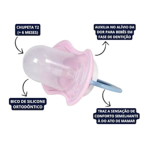 Características: Bico Orto, formato semelhante de uma mamilo natural, trazendo a sensação de conforto semelhante à do ato de mamar.