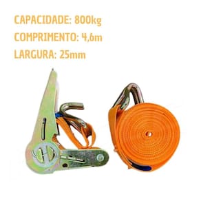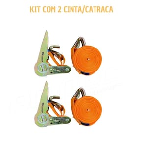 Conjunto 2 kit catraca amarração com cinta 800kg 4,6 metros Amarração de cargas em geral: carreta/ caminhões/ caminhonetes/ barcos/ moto/ bike/ etc; -material: Cinta de poliéster Gancho e catraca: aço bicromatizado; -comprimento total da cinta: 4,6 metros 4,1m da cinta + 0,5m catraca ; -capacidade de tração: 800kg; -gancho tipo j; -cor: laranja Itens inclusos: 2 conjuntos kit catraca+cinta -------------------------------------------------------------- - a ampec autopeças não se responsabiliza pelo mau uso ou instalação indevida do produto, sempre recomendamos que a instalação seja feita por um profissional especializado.
