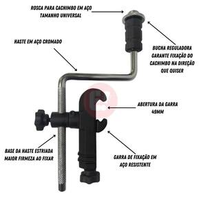 Nova ponteira elegante e resistente de Metal Rosca de Metal tamanho Universal Fixação resistente Acabamento: Cromado Altura Máxima: 22cm Peso: 0,43kg Modelo: Clamp de Bateria para Microfone Estrutura em Metal Cor: Preto