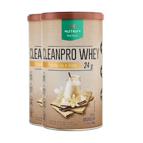 Kit 2 clean pro whey hidrolisado baunilha nutrify 450g Benefícios: aumento da massa muscular e longevidade. Uma suplementação proteica leve, de fácil digestibilidade e livre de compostos artificiais. Cleanpro whey nutrify oferece a proteína de soro do leite isolada e proteína de soro do leite hidrolisada. Rico em aminoácidos essenciais, origina uma fórmula capaz de ofertar 5 g de bcaa por dose. Na origem da matéria-prima, whey protein proveniente de gado alimentado somente com pasto grass-fed . Cleanpro whey nutrify utiliza estévia e taumatina, adoçantes 100% oriundos de fontes naturais. Nutrify valoriza a origem de cada ingrediente, respeita a integridade de suas fontes naturais e dos envolvidos em sua produção. É assim que criamos produtos saudáveis e saborosos, que fazem bem para as pessoas e para o planeta. Acreditamos que nutrir corpo e mente de modo saudável nos torna capazes de alimentar o mundo com atitudes positivas. Ingredientes: proteína de soro do leite isolada, proteína de soro do leite hidrolisada, aromatizante natural e edulcorantes naturais estévia e taumatina. Alérgicos: contém derivados de leite e soja. Ingrediente utilizado no processo de fabricação da proteína do soro de leite com função de instantaneização. Não contém glúten. Contém lactose. Contém aromatizante. Apresentação: embalagem disponível: lata contendo suplemento em pó. Sabor baunilha. Peso líquido: 450 g produto classificado como: suplemento alimentar de proteínas em pó sabor de baunilha. Conservação: conservar este produto ao abrigo de luz, calor e umidade, antes e após o primeiro consumo. Marca: Não Informado