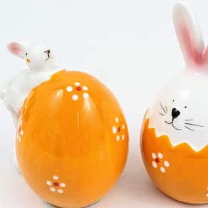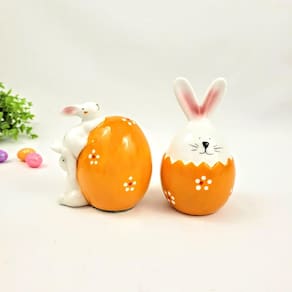 Design Delicado e Sofisticado: Cada coelho é cuidadosamente posicionado dentro de um ovo de porcelana, criando uma peça única e cheia de charme. O design minucioso mistura tradição e elegância, proporcionando um detalhe especial para sua Páscoa.