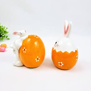 Kit 2 Coelho De Páscoa De Porcelana Ovo Decorativo Kit com Dois Ovos de Páscoa de Porcelana com Coelho Decorativo - Charme e Elegância para Sua Decoração de Páscoa