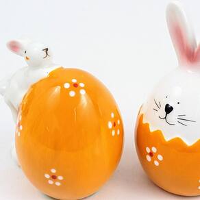 Design Delicado e Sofisticado: Cada coelho é cuidadosamente posicionado dentro de um ovo de porcelana, criando uma peça única e cheia de charme. O design minucioso mistura tradição e elegância, proporcionando um detalhe especial para sua Páscoa.