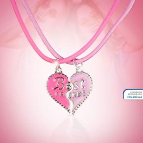 Kit 2 colares amizade best friend amigas + pingente coração qualidade premium moda presente rosa kit 2 colares amizade best friends - compartilhe vínculos únicos
