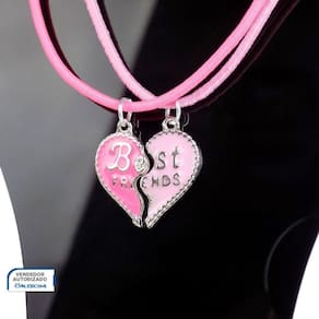 Kit 2 Colares Amizade Best Friend + Pingente Coração Rosa Menina Moda Presente Qualidade Premium