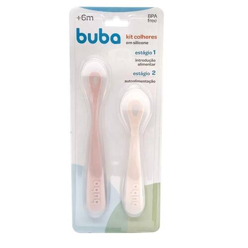 Kit Colheres 2 Estágios da Buba possui uma colher para a introdução alimentar com cabo longo ideal para ser manuseado pelo adulto para alimentar o bebê, e a outra para a autoalimentação, com cabo ergonômico, adequada para as mãozinhas do pequeno, desenvolvendo a sua coordenação motora e autoconfiança. Ambas possuem a ponta macia em silicone suave, perfeita para gengivas delicadas.