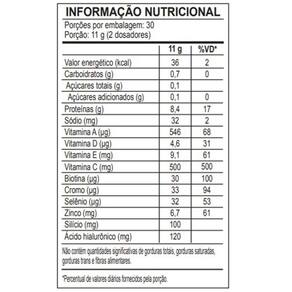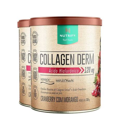 Kit 2 collagen derm hialurônico cranberry com morango nutrify 330g Collagen derm nutrify é uma formulação completa, que reúne os ativos mais importantes e comprovadamente eficazes para a manutenção da saúde da pele. Cada porção fornece 8,4 g de proteínas provenientes de colágeno hidrolisado, 120 mg de ácido hialurônico, 100 mg de ácido ortosilícico estabilizado em colina e 2,5 g de verisol , que auxiliam na recuperação da firmeza dos tecidos, melhorando sua aparência. Sua formulação conta ainda com as vitaminas a, c, d, e, biotina e os minerais zinco, selênio e cromo, que favorecem a absorção dos peptídeos de colágeno e promovem o fortalecimento de unhas e cabelo. Peptídeos bioativos de colágeno verisol e ácido ortosilícico. Nutrify valoriza a origem de cada ingrediente, respeita a integridade de suas fontes naturais e dos envolvidos em sua produção. É assim que criamos produtos saudáveis e saborosos, que fazem bem para as pessoas e para o planeta. Acreditamos que nutrir corpo e mente de modo saudável nos torna capazes de alimentar o mundo com atitudes positivas. Ingredientes: colágeno hidrolisado, peptídeos bioativos de colágeno hidrolisado com peso molecular médio de 2kda verisol , ácido ascórbico, mix de vitaminas e minerais ácido ascórbico, acetato de dl-alfatocoferila, sulfato de zinco monoidratado, acetato de retinol, picolinato de cromo, selenito de sódio, d-biotina e colecalciferol , concentrado de rabanete e cenoura, hialuronato de sódio obtido pela fermentação de streptococcus zooepidemicus, ácido ortosilícico estabilizado em cloreto de colina, acidulante ácido cítrico, aromatizantes naturais e edulcorante glicosídeos de esteviol de stevia rebaudiana bertoni. Não contém glúten. Contém aromatizante. Este produto não é um . Não exceder a recomendação diária de consumo indicada na embalagem. Mantenha fora do alcance de crianças. Este produto é recomendado para adultos a partir de 19 anos. Apresentação: embalagem disponível: lata contendo suplemento em pó. Sabor cranberry com morango. Peso líquido: 330 g produto classificado como: suplemento alimentar em pó sabor de cranberry com morango.