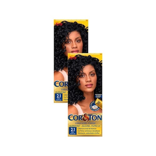Tintura Cor&Ton Preto Jabuticaba 2.1 Com Cor&Ton você realiza seu desejo de clarear ou escurecer os cabelos, realçar sua cor natural, revelar reflexos ou cobrir os cabelos brancos. Experimente! Benefícios: - Cobre 100% os fios brancos. - Cabelos macios. - Cabelos 3x mais brilhosos. - Não escorre e nem mancha a pele. - Dura até 20 lavagens. Ação: Com sachê de tratamento Fixacor com pH baixo, que finaliza o processo de colorir, selando as cutículas e deixando as cores mais firmes e duradouras, além de melhorar a textura e a maciez dos fios. Modo de usar: • Coloque a tinta no frasco aplicador e agite bem até ficar homogêneo; • Separe o cabelo e aplique da raiz as pontas e espalhe uniformemente em todo o cabelo (aplique a tinta com o cabelo seco). Precaução: Em caso de coceira, irritação, erupção cutânea ou sensação de ardência do couro cabeludo, enxágue imediatamente e suspenda o uso. Consulte seu médico. Em caso de dificuldade para respirar, peça imediatamente assistência médica e com o fabricante. Antes de colorir seu cabelo novamente, consulte o médico. Se durante os dias seguinte da aplicação aparecerem coceiras, vermelhidão ou empolamento do couro cabeludo ou da pele, inchaços nos olhos e/ou no rosto, bolhas no couro cabeludo e/ou na pele, peça imediatamente assistência médica e contate o fabricante. Composição: COLORAÇÃO CREME COR&TON: AQUA / WATER ? CETEARYL ALCOHOL ? AMMONIUM HYDROXIDE ? CETEARETH-25 ? COCAMIDE MEA ? STEARIC ACID ? PALMITIC ACID ? PROPYLENE GLYCOL ? 2,3-DIAMINODIHYDROPYRAZOLO PYRAZOLONE DIMETHOSULFONATE ? 4-AMINO-2-HYDROXYTOLUENE ? p-AMINOPHENOL ? 5-AMINO-6-CHLORO-o-CRESOL ? ASCORBIC ACID ? SODIUM SULFITE ? SODIUM HYDROXIDE ? SODIUM LAURYL SULFATE ? HYDROXYETHOXY AMINOPYRAZOLOPYRIDINE HCL ? SODIUM METABISULFITE ? HYDROLYZED WHEAT PROTEIN ? HYDROLYZED CORN PROTEIN ? HYDROLYZED SOY PROTEIN ? PHENOXYETHANOL ? PEG-40/PPG-8 METHYLAMINOPROPYL/HYDROXYPROPYL DIMETHICONE COPOLYMER ? 1-HYDROXYETHYL 4,5-DIAMINO PYRAZOLE SULFATE ? ETHYLHEXYL SALICYLATE ? POLYQUATERNIUM-6 ? ISOPROPYL MYRISTATE ? DIPROPYLENE GLYCOL ? MYRISTIC ACID ? CETRIMONIUM CHLORIDE ? TETRASODIUM EDTA ? GLYCERIN ? PARFUM / FRAGRANCE ? Marca: Não Informado