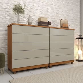 Observação: São duas cômodas de 5 gavetas nesse kit Altura do Conjunto: 98 cm Ambiente Principal: Quarto codigo_ean: 7900288021809 Cor: Cinamomo/Off White Cor do Produto: Cinamomo/Off White Informação Complementar: 2x Cômoda 5 Gavetas Premium Com Pés Cinamomo/Off White Largura: 86 cm Altura: 98 cm Peso: 33,695 kg Profundidade: 45 cm Necessita Montagem: Sim