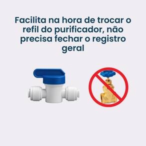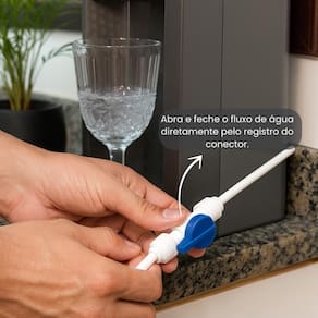 Permite abrir e fechar a água diretamente na mangueira do purificador