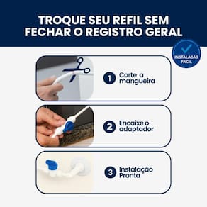 Esse acessório facilita a troca de refil, manutenções e ajustes no purificador, oferecendo um controle preciso do ponto de água e um acabamento mais limpo e profissional na instalação.