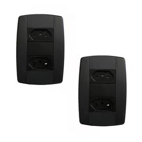 Kit 2 Conjunto 2 Tomadas Preta Monobloco 2P+T 20A 250V 4X2