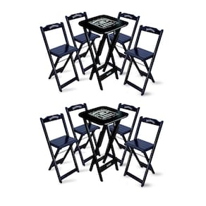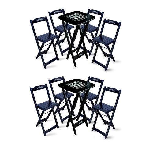 Kit 2 Conjuntos De Mesa Bistrô Dobrável Jack Daniel S Com 4 Banquetas De Madeira Preta O Conjunto Jack Daniel?s é ideal para bares, restaurantes, estabelecimentos, áreas de lazer e também para sua casa. Em madeira maciça, tornando-os resistentes e duráveis. Seu design permite que esse conjunto seja encaixado em qualquer ambiente, trazendo um toque a mais para seu estabelecimento. Além de sua durabilidade, o que lhe trará conforto para servir seus clientes. Por ser dobrável torna-se mais fácil guardar, manusear e limpar o produto.
