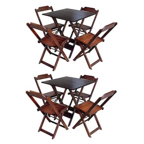 Kit 2 Conjuntos De Mesa Com 4 Cadeiras De Madeira Dobravel 70X70 Imbuia - Marrom