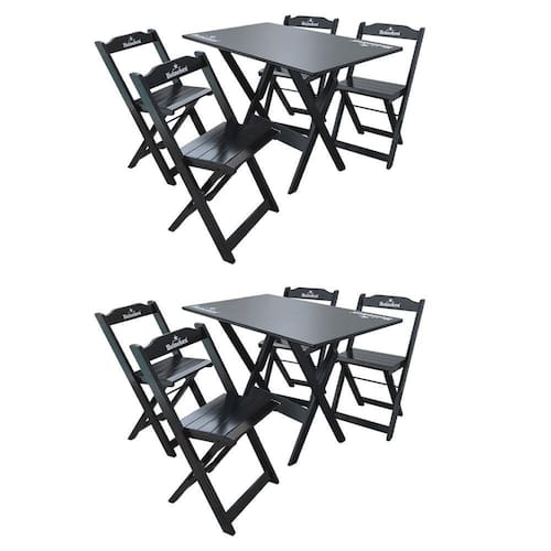 Kit 2 Conjuntos Mesa Dobrável Madeira 110x70 Com 4 Cadeiras Personalizada Hei Preta - Tarimatã