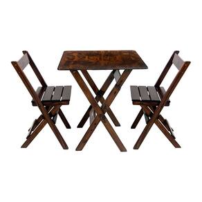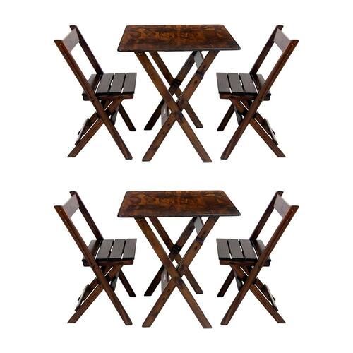 Kit 2 Conjuntos Mesa Dobrável Para Bar E Restaurante 60x60cm Com 2 Cadeiras Em Madeira Maciça - Imbu - Marrom