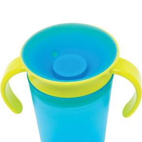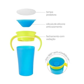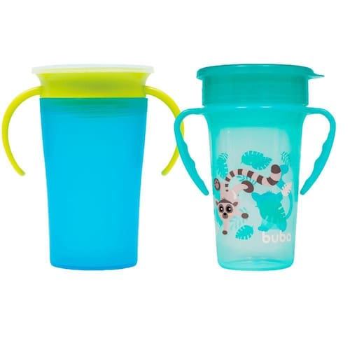 Kit 2 copos 360 de treinamento bebe antivazamento transição infantil com alça buba Cor: azul/lemure Kit com 2 copos. O copo de treinamento 360 com alca removível da buba auxilia o pequeno na adaptação ao uso dos copinhos sem bico. O sistema de vedação funciona por sucção, a bebida só sai quando a criança suga. O pequeno pode beber de qualquer lado da borda e segurar o copo em qualquer posição sem que haja vazamentos.