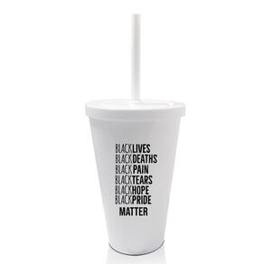 Kit 2 Copos Com Tampa E Canudo Branco Lista Black Lives