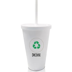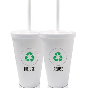 Kit eco com copos com tampa e canudo eco personalizados para ajudar o meio ambiente. Adote o seu copo e evite descartáveis. Juntos somos mais fortes. Confira as opções de copos, taças e canecas ecológicas personalizadas. Especificações: Material: Acrílico PS Altura: 14,5 cm Diâmetro: 9,5 cm Capacidade: 550 ml Cor: Branco Quantidade: 2 peças