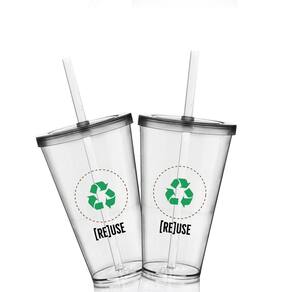 Kit 2 Copos Com Tampa E Canudo Eco Reuse Um Copo Krystalon