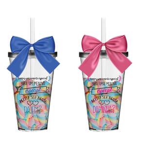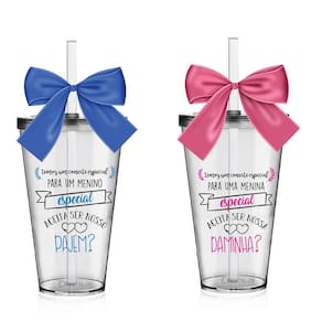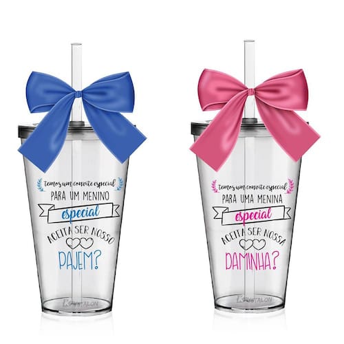 Os Copos Convite são uma forma linda e deliciosa de convidar ou agradecer os pequenos por participarem de uma data tão única. Com capacidade de 550 ml, você tem a opção de encher os copos com todo tipo de doce e assim encantar os futuros Pajem e Daminha. O sim deles será GARANTIDO Conteúdo: 2 Copos Convite com Tampa e Canudo Transparentes com 1 Laço em Cetim Rosa e 1 Laço em Cetim Azul. Especificações: Capacidade: 550 ml Material Copo: Acrílico Poliestireno Resistente Laço: Cetim Cor do Copo: Transparente Tampa e Canudo: Transparente Quantidade: 2 Peças Marca: Não Informado