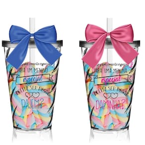 Kit 2 Copos Convite Twister Pajem E Daminha Os Copos Convite são uma forma linda e deliciosa de convidar ou agradecer os pequenos por participarem de uma data tão única. Com capacidade de 700 ml, você tem a opção de encher os copos com todo tipo de doce e assim encantar os futuros Pajem e Daminha. O sim deles será GARANTIDO Conteúdo: 2 Copos Convite com Tampa e Canudo Transparentes com 1 Laço em Cetim Rosa e 1 Laço em Cetim Azul. Especificações: Capacidade: 700 ml, Material Copo: Acrílico Poliestireno Resistente, Laço: Cetim, Cor do Copo: Transparente, Tampa e Canudo: Transparente, Altura: 14,5 cm, Diâmetro: 9,5 cm, Personalização: Transfer Aplicação Direto no Produto , Quantidade: 2 Peças Marca: Não Informado