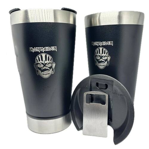 Kit 2 Copos Iron Maiden 500ml Térmico + tampa + abridor Este copo térmico possui uma construção robusta com materiais de alta qualidade, mantêm sua bebida gelada ou quente por muito mais tempo.