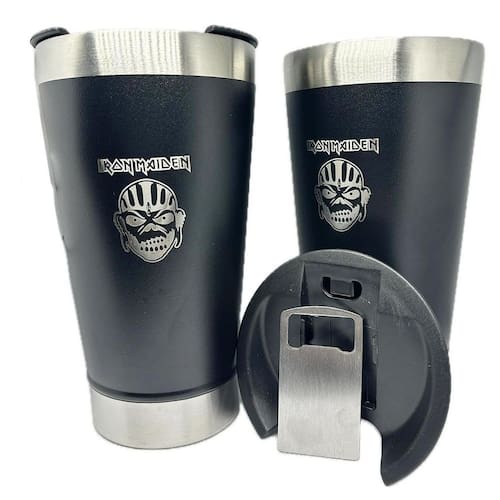 Kit 2 Copos Térmico Iron Maiden 500ml Tampa + abridor Este copo térmico possui uma construção robusta com materiais de alta qualidade, mantêm sua bebida gelada ou quente por muito mais tempo.