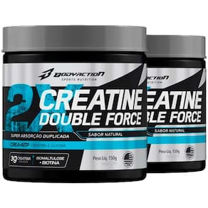 - creatine double force: creatina double force é um suplemento à base de creatina monohidratada, isomaltulose, glicina e biotina: uma potente e exclusiva combinação que promove maior eficácia e absorção da creatina, além de agir no aumento da força. A creatina auxilia no aumento do desempenho físico durante exercícios repetidos de curta duração e alta intensidade. A fórmula com glicina potencializa a ação da creatina. Isomaltulose e biotina auxiliam na recuperação da função muscular normal após exercícios extenuantes, além de ajudar na absorção da creatina.