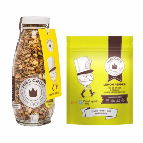 Kit com 2 Granolas Crispy sabor Lemon Pepper Miss Croc: Garrafa e Refil Sachê