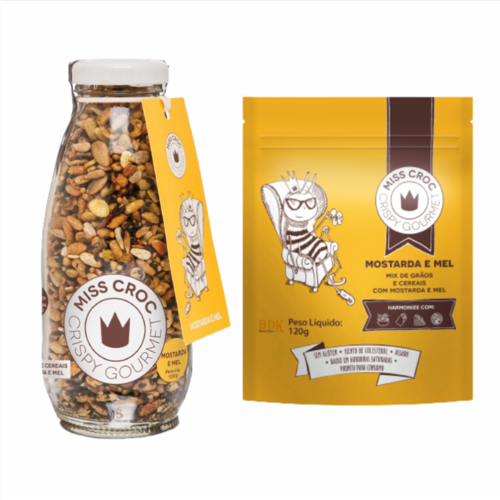 Kit com 2 Granolas Crispy sabor Mostarda e Mel Miss Croc: Garrafa e Refil Sachê