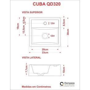 A cuba Q32 tem seu design quadrado, especial para pequenos espaços e um excelente escoamento de água. Fabricada em mármore sintético com acabamento em Hard Lacca PU, material bem semelhante a louça, muito resistente e mais econômico. Altura do Conjunto: 10 cm Ambiente: null Ambiente Principal: Banheiro Cor: Bege Informação Complementar: 2x Cuba para Banheiro Q32W Bege Largura: 30 cm Altura: 10 cm Peso: 3,75 kg