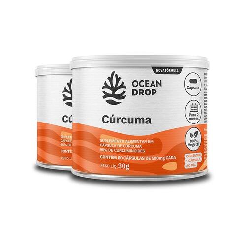 Kit 2 Cúrcuma Ocean Drop Vegana 60 Cápsulas Ingredientes: Extrato de rizomas de cúrcuma longa Curcuma longa L. , óleo de linhaça Linum usitatissimum L. . Cápsula vegetal: hidroxipropilmetilcelulose, carragenina e acetato de potássio. Não contém glúten. Modo de Uso: Sugere-se a ingestão de 1 cápsula ao dia, ou conforme recomendação . Pode ser consumida em qualquer refeição com um pouco de água ou outro líquido. Produto com duração de 2 meses. Contraindicação: Não deve ser consumido por gestantes, lactantes e crianças. Pessoas com sensibilidade ou alergia a curcumina ou que usam medicamentos que atuam na coagulação sanguínea devem consultar um da saúde antes de consumirem a cúrcuma. O consumo de extrato de cúrcuma é contraindicado para pessoas com problemas biliares, úlceras estomacais, hiperacidez ou crianças. Este produto não é um . Informações Adicionais: Produto dispensado de registro conforme RDC 240/2018 MS. Marca: Não Informado
