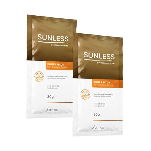 DESCOLORANTE SUNLESS DOURA PELOS Descoloração instantânea. Fácil aplicação. O Pó Descolorante Doura Pelos é utilizado para descoloração dos pelos dos braços, pernas e barriga, deixando-os dourados e com brilho. Pode causar reação alérgica. Contém amônia. Antes de usar, faça a prova de toque. Preparo: Em um recipiente não metálico coloque todo o conteúdo do sachê e em seguida adicione a Loção Cremosa Descolorante. Misture até obter uma consistência homogênea e cremosa. Importante: Não guarde sobras do produto. Modo de Usar : Aplique a mistura sobre os pelos da área que deseja descolorir. Mantenha o produto em contato com os pelos de 15 a 30 minutos. Obedecer o tempo de contato do produto com a pele. Em seguida, lavar a região abundantemente com água, até retirar todo o produto. Atenção: Não usar em pessoas com hipersensibilidade ao Peróxido de Hidrogênio. Fazer prova de toque. Precauções: Não usar nos cílios e sobrancelhas. Não aplicar o produto na pele lesada. Evitar contato com os olhos. Em caso de contato com os olhos, lavar com água em abundância, se necessário, procure um médico. Obedecer o tempo de contato determinado do produto. Em seguida, lavar a região abundantemente com água. Não fazer a aplicação do produto e ficar exposto ao sol simultaneamente. Este produto deve ser utilizado para o fim a que se destina, sendo perigoso qualquer outro emprego. Manter fora do alcance das crianças. Guardar em local fresco, protegido da luz solar direta e calor excessivo.