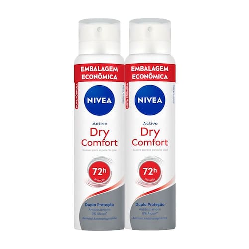 NIVEA Desodorante Antitranspirante Aerossol Dry Comfort 200ml O que é? NIVEA Desodorante Antitranspirante Aerossol Dry Comfort é um desodorante desenvolvido para oferecer proteção duradoura contra o suor e mau odor. Ele garante sensação de pele seca por até 72 horas, além de ser dermatologicamente testado para oferecer conforto e cuidado para a pele. Para que serve? Regula a transpiração excessiva, combatendo o suor e os odores, ao mesmo tempo que proporciona uma dupla proteção com dois ativos antibacterianos e 0% de álcool. Sua fórmula é ideal para quem busca conforto para o uso diário. Benefícios e Diferenciais: - Sensação confortável e seca - Não contém álcool etílico - Dupla proteção antibacteriana - 72h de proteção - Dermatologicamente testado Modo de usar: Aplicar a 15 cm de distância das axilas. Espere secar antes de se vestir. Em caso de funcionamento anormal da válvula, vire o frasco para baixo e agite bem. Ingredientes: Butane (Butano), Isobutane (Isobutano), Propane (Propano), Aluminum Chlorohydrate (Cloroidróxido de Alumínio), Isopropyl Palmitate (Palmitato de Isopropila), Dicaprylyl Ether (Dicaprilil Éter), Caprylic/Capric Triglyceride (Triglicerídeo Caprílico/ Cáprico), Aluminum Sesquichlorohydrate (Sesquicloroidrato de Alumínio), Magnesium Aluminum Silicate (Silicato de Magnésio Alumínio), Octyldodecanol (Octildodecanol), Persea Gratissima Oil (Óleo de Persea Gratissima), Disteardimonium Hectorite (Hectorita Diesteardimônio), Propylene Carbonate (Carbonato de Propileno), Tocopherol (Tocoferol), Benzyl Alcohol (Álcool Benzílico), Geraniol (Geraniol), Citronellol (Citronelol), Parfum (Perfume) Precauções: Usar somente nas axilas. Não usar se a pele estiver irritada ou lesionada. Caso ocorra irritação e/ou prurido no local da aplicação, suspender o uso imediatamente e procurar orientação médica. Evite a inalação deste produto. Proteger os olhos durante a aplicação. Perigo: Aerossol extremamente inflamável. Recipiente sob pressão: risco de explosão sob a ação do calor. Manter afastado do calor, superfícies quentes, faísca, chama aberta e outras fontes de ignição. Não fumar. Não pulverizar perto do fogo ou outra fonte de ignição. Não perfurar, nem incinerar, nem queimar, mesmo após utilização. Manter ao abrigo da luz solar. Não expor ao sol nem a temperaturas superiores a 50°C. Manter fora do alcance de crianças. Somente a embalagem vazia pode ser reciclada.